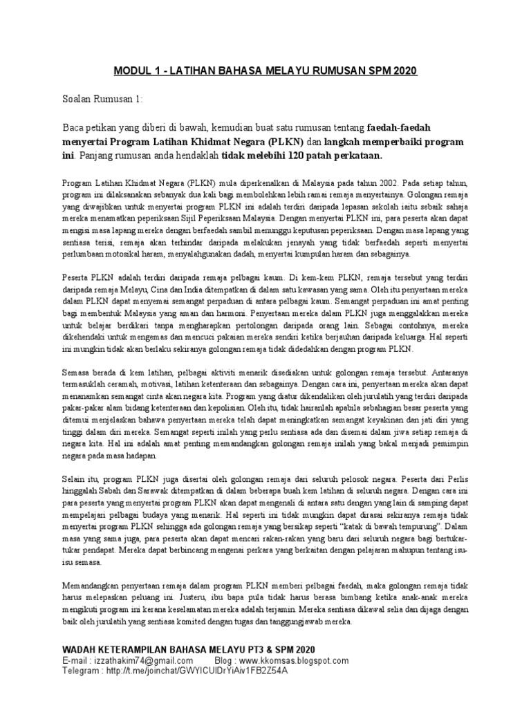 Modul 2 Latihan Bahasa Melayu Rumusan Spm 2020 Pdf