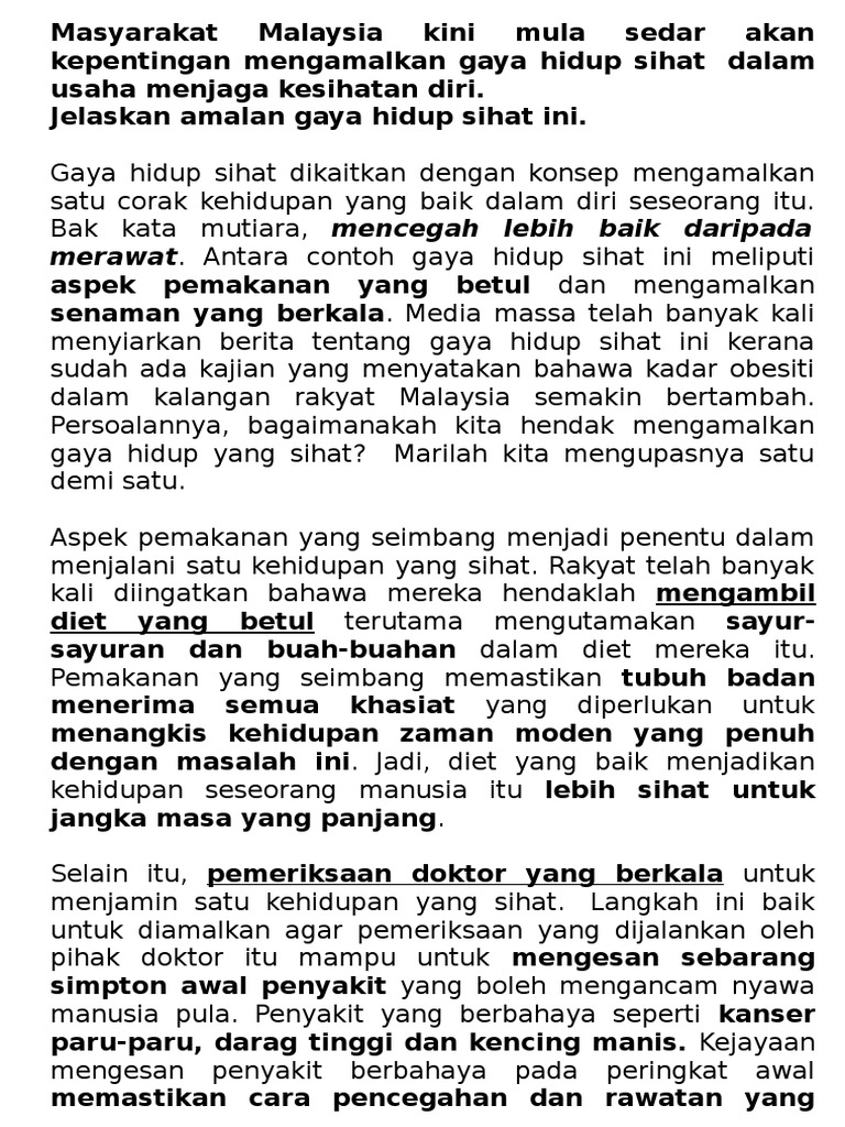 Contoh Karangan Amalan Gaya Hidup Sihat Pdf